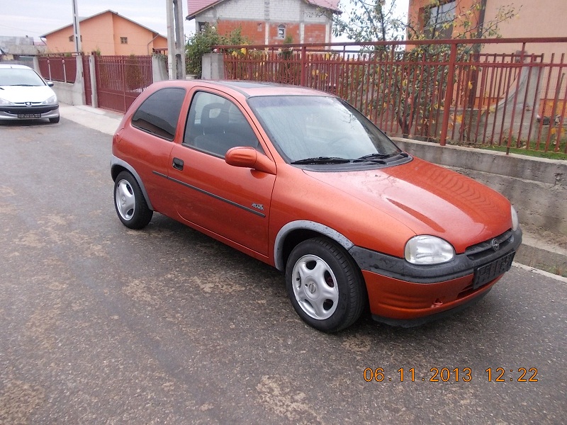 Opel corsa an fab, 97’ motor 1390, 68 cp. Aer conditionat, trapa cu doua poziti, jante aliaj cu cauciucuri noi, inchidere centralizata, rezerva nerulata, vopsea originala 100%, volan-scaun reglabi